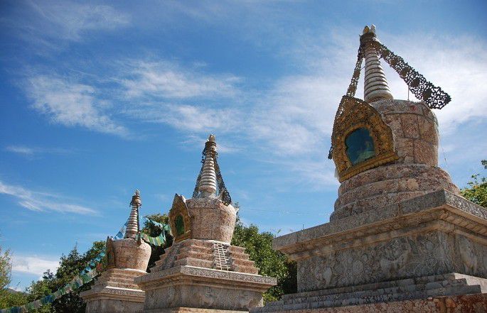 岛岸乱石林立,犬牙交错。岛上树木繁茂,花草密布。拾级而上,沿途有喇嘛庙、土司墓、瞭望台等景观。