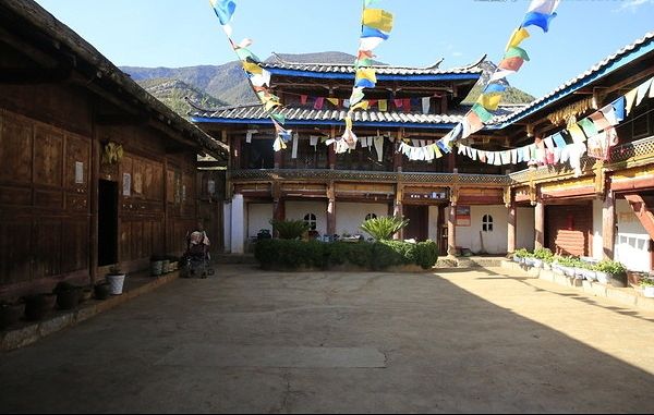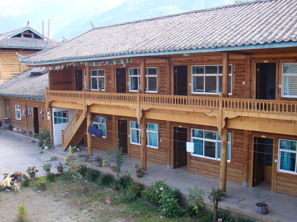 游湖毕,我们参观了几处颇具代表的民居,都为木式结构,叫木楞房。四壁用了削了皮的圆木,两端砍上卡口衔楔垒摞而成。就连屋顶也用了木板盖就。一般都是四幢木楞子房,围成一个大的院井。似乎有点像北京的四合院。进门的第一幢,叫门楼。越跨越天井正对大门的第一幢,叫经楼。天井右边是花楼。摩梭人家的女人是不出嫁的,只要是家中成年女人,就各居一间,供与“阿夏”共享甜蜜爱情的地方。“阿夏”,摩梭语为亲密伴侣。天井左边则为正房。