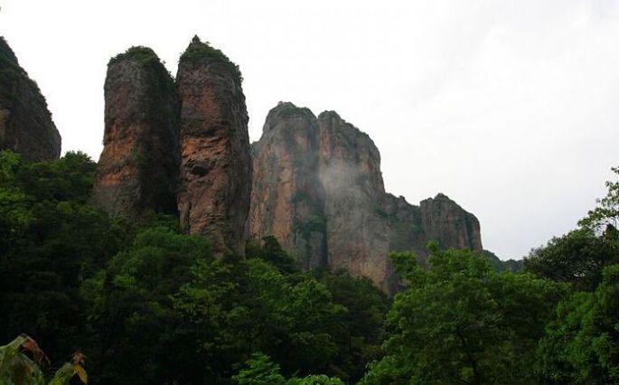 百度了一下雁荡,雁荡山以瓯江自然断裂,分北雁荡山和南雁荡山,这次去的是北雁荡,山体虽然不高,但是由于是火山岩,所以与别的山都不太一样,又在绿树、瀑布的点缀下显得格外秀丽,可惜天气原因,照片不能很好的体现灵峰之貌~