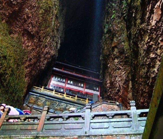 来到合掌峰,外面下起了小雨,赶忙躲进峰中一探究竟~