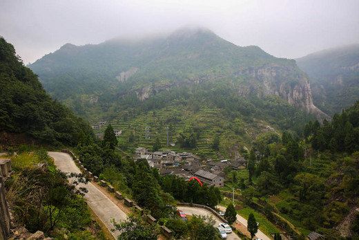 乐清市出发,沿着灵山一路前行,当我们驱车在盘山的公路上,沿着弯曲的道路往下走的时候,远远的看见在山谷里的村落,石墙瓦片,在初秋的雨天里有些凄凉,让人不免产生吝惜之情。