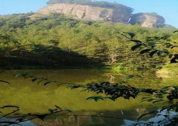 岩顶宽广,面积20余亩。处身岩顶,疑为仙境,松青竹翠,桃红李白,落英缤纷。放眼四周,山川美景一览无余。岩顶昔有定香院,现有八角亭,且有日、月池,传说二池一清一浊,现月池已毁,日池犹在,为人工凿成,长6米、宽4米、深2米,四季不涸。