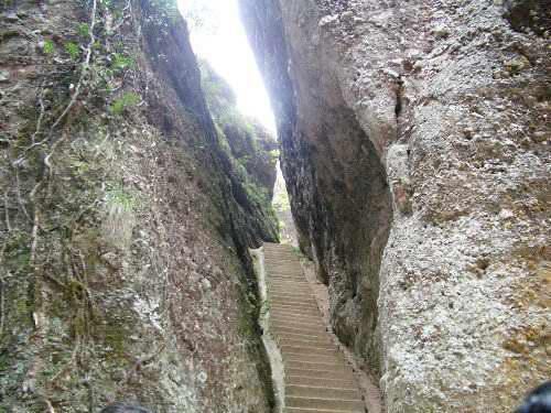 这次去位于浙江丽水市境内的东西岩,印象最深刻的,是位于青田县的东岩。东岩,高60余米,四面陡峭,屹立如鼓,因岩壁呈赤色,故又称赤石楼。古人有诗日:“白日依山近,琼楼矗石危。千峰霞散绮,幻出赤城奇。”上赤石楼顶唯一途径需身傍峭壁,脚踏斜蹬,手攀穷窿,旋转于石缝之间,穿过二道“天门”方可到达。