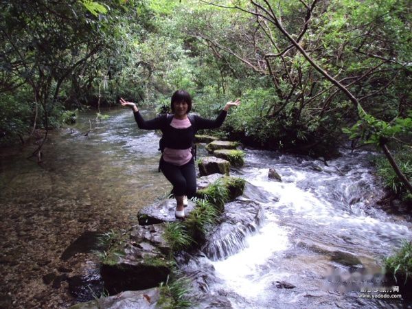 去往小七孔的车上偶遇一湘妹子五儿,活泼伶俐,讨人喜欢,与之一拍即合结伴同行。五儿做足功课,要玩遍小七孔内所有景点,路线图随身携带着。常规路线是有观光车接送的,但龟背山、野鸭池、飞云洞、漏斗原始森林不在其内,有美眉相伴志趣相投,何乐不为呢?五儿在车上骄傲地叫嚷:“师傅我们要去龟背山,到了地方停一下。”问:“你们知道路否?”答:“我们有路线图。”遂下车。