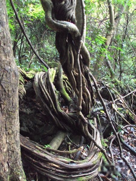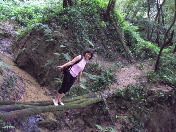 漏斗原始森林是一个槽形的山谷,时常看到被洪水冲倒的树木以及有些腐烂的树干搭的小桥。仿佛历尽长途跋涉,终于感觉小路斜着向上延伸,我大胆预测离出去不远了。再往前行,地势较为平坦,已是一片竹林。五儿叫道:“野猪林。”如果是我们就真的走出了原始森林,我内心强烈地希望是,但嘴里却逗她:“如果是为何不叫野竹林,却叫野猪林呢?这里哪有野猪?真有野猪,导游图上早该标明,景区管理哪有胆量放人进来?”我们早就没有了欣赏竹林的兴致,这样争论着分散不安的情绪,脚下一点不敢停顿。