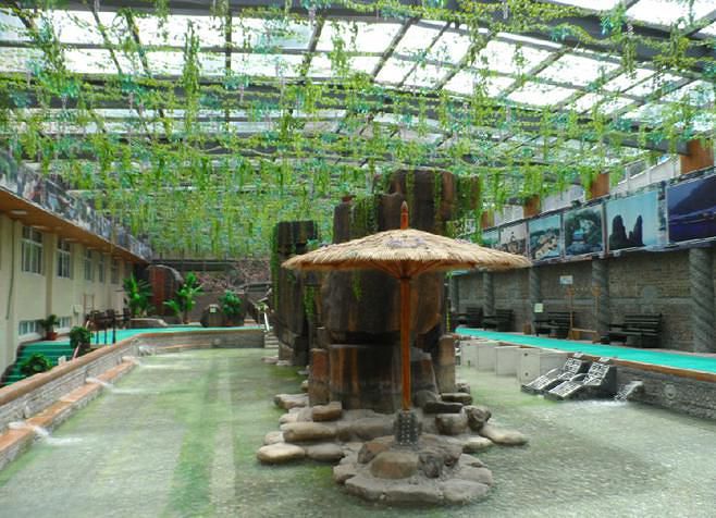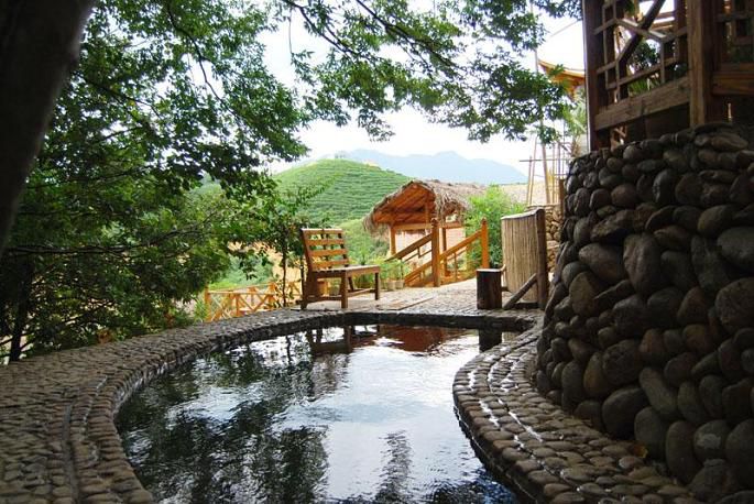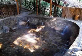 汤沐园的温泉水源在金山脚下,水质100%纯天然,是难得的优质岩层温泉。利用温泉丰富的微量元素和矿物质,配鱼疗、药疗等,由于温泉置身于具有150多年阔叶树森林里,充足的空气负离子,我们完全的把自己交给这里,精神和身体都得到从未有过的放松和享受。