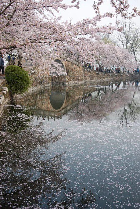 看着这漫天的樱花,和水的融合,别有一番景致。