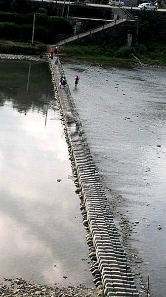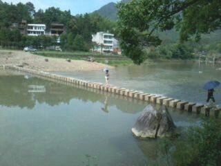 仕阳很大,也很繁华,像个小县城,可是我们并不是来逛街的,是要找寻仕阳著名的仕水碇步。"碇步",又名“石碇步”“水碇步”,是桥梁的原始形态,因其形状酷似琴键,故又名“琴桥”,山里的溪水处处可见,流量较小,只有夏季才偶发山洪。勤劳聪明的山里人发明了"碇步"这种坚固实用、省时省力的简易桥梁,给他们的生活带来了许多便利。