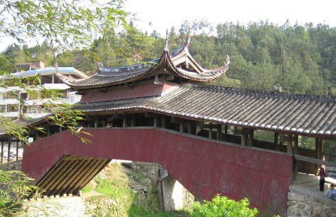北涧桥是至今泰顺保留下来的最美的一座廊桥,连接在桥头两端的木屋依然还做着营生。夕阳中的廊桥掩映在古榕下,仍留一丝想象。