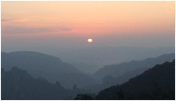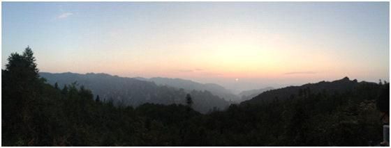 夕阳照射重峦,霞光倾斜万山。太阳落山,霞光渐退在暮色来临山野的茫茫中,巅峰却凝聚着一片彩霞,经久不灭。这晚我们在大观台处