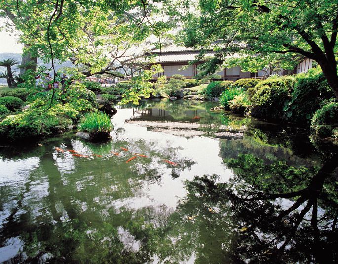 这个鱼池算是仙岩园里面的点睛之笔,锦鲤优哉游哉的在水中嬉戏,绿荫倒影下显得幽静无比。我想仙岩园能够成为鹿儿岛里面最受欢迎的旅游景点之一就是和这里幽静清闲的氛围有着很重要的关系。毕竟日本人的压力还真是蛮大的,能够在这里享受到一种久违的宁静吧!
