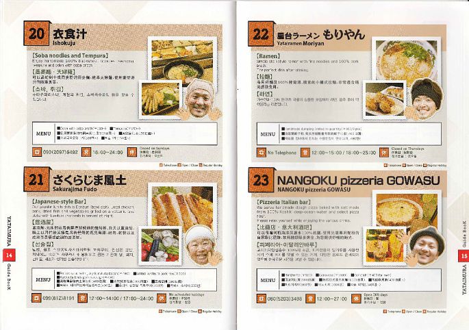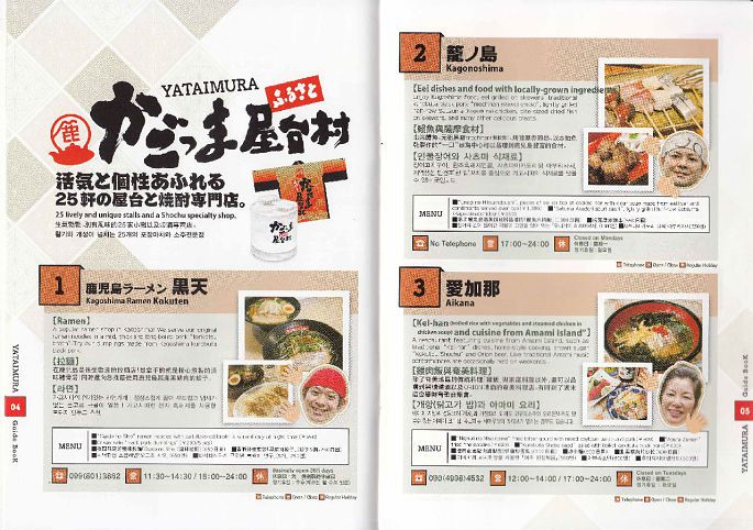 这是宣传页,很人性化哦~有中文、英文、韩语。总之是基本大部分游客都能看懂就对了。这个屋台村其实就和国内的美食城是一个性质的,但是装修特别有格调,充满了日系传统风格。