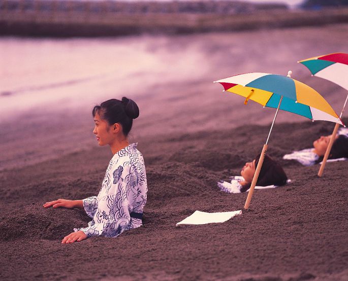 砂蒸是鹿儿岛的特色,将整个人都埋在温热的砂子里,55度左右的温度足以让人体的血脉扩张。反正我埋在里面的时候那叫一个舒服~对了。为了防止被太阳照着脸部不爽,每个人都有一个萌萌哒的遮阳伞~很人性化的。