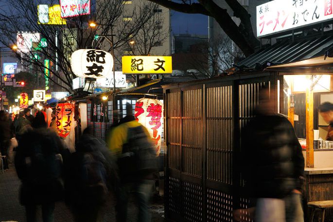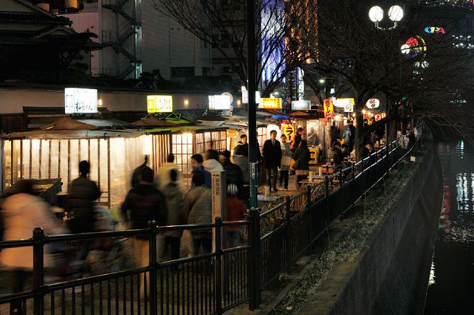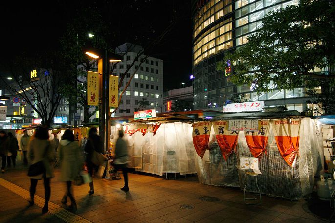福冈的屋台沿街而搭,天色渐暗后,屋台才开始准备,到了晚上8,9点,这里就变得热闹非凡了。有没有一种《千与千寻》里面那种感觉!
