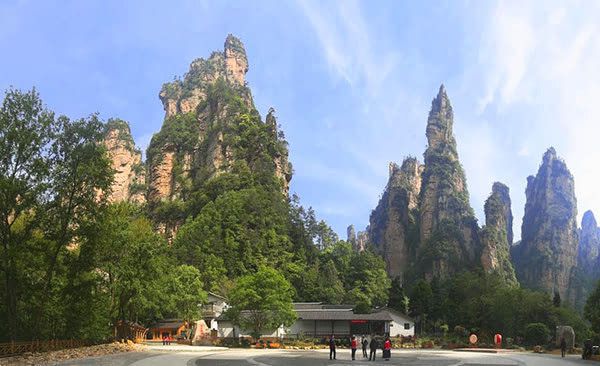 29日上午徐导带我们去了杨家界风景区,主要的景点有:乌龙寨(也就湘西是有名的土匪窝)、三道鬼门关、杨门女将、回音壁、情人峰、五指山、天波府、五郎拜佛、一步登天、空中走廊等。中午在乌龙寨那儿他们的乌龙寨客栈吃的午餐。