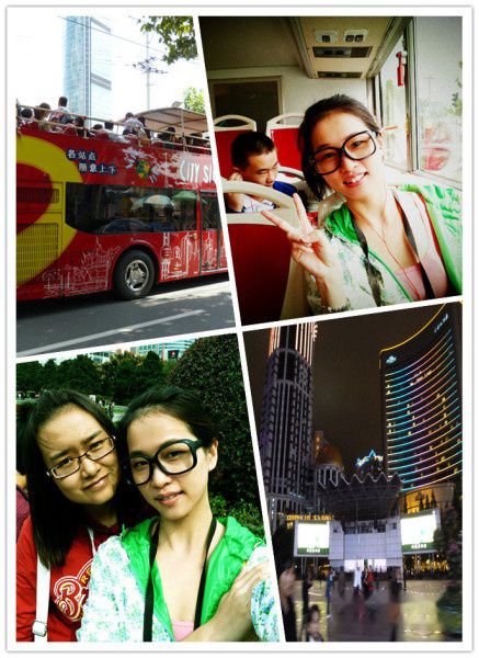 本来准备第一天就坐的可苦于价格昂贵就克制住了,在网上查的价格是100来块,结果隔天在外滩发现了另外一种价位的30元/人,问了售票员两者的差别,售票员毫不隐瞒的说160元的那种是坑人家老外的,额,中国人啊,哈哈,赚老外赚的这么狠。好,值得鼓励,继续加油哈!30元这种分浦东浦西两条线,24H任意上下,每人发一耳塞,八国语言景点介绍。结果我们悲剧的因为时间的仓促只坐了一条线,留下了不小的遗憾啊,所以建议其他的游人们刚到上海就去买这种观光大巴票,比较抵啊。