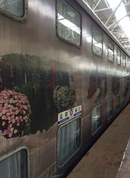 早上九点的火车出发到昆明再坐返程,值得欣喜的是这是一趟双人卧铺车,上下铺的双层火车,没有上中下铺,很舒服,第一次坐双层火车很兴奋,再见了丽江,有机会还会再来!