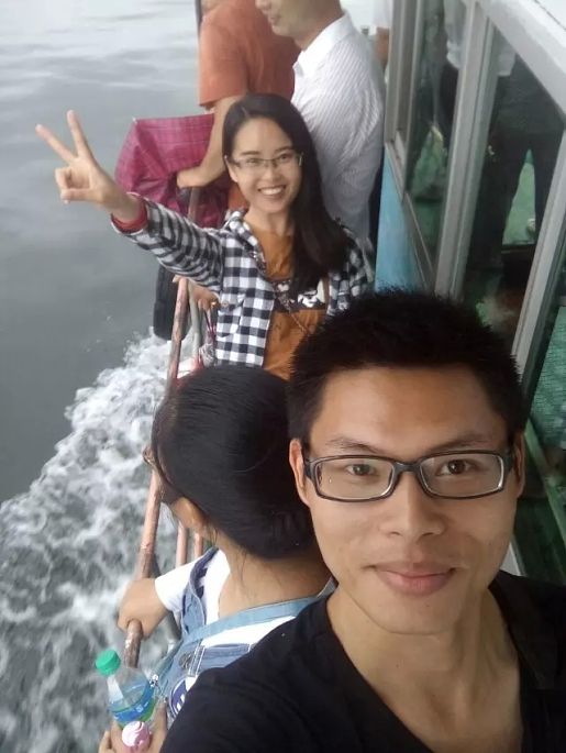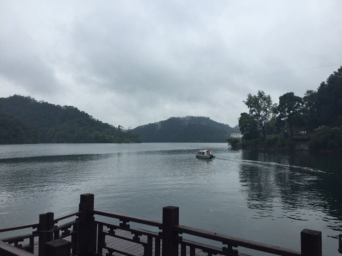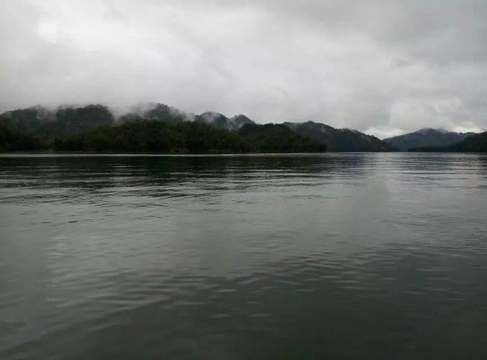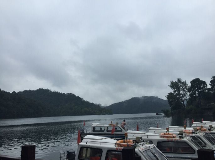 迎着湖风走到夹板前,风很大很舒服,把原本疲惫慵懒的睡意都已经吹醒...湖水很清澈,群山环绕,岛上的树叶郁郁葱葱,迎面而来的都是湖水和树木的气息。要是在来点鸟儿的鸣叫、花儿的芬香就再好不过,似乎就可以感受到当时海子写下的那句“面朝大海,春暖花开”的心境。湖水很深,所以即使湖水很清澈,但是依然不能见底,或许这也是为什么陡水湖的鱼这么出名的原因。(Ps:据说湖水有六十多米深)缓缓的走到护栏旁边紧紧的拽着栏杆丝毫不敢大意,湖风肆意地挑动着头发,长衬衫在湖风的吹拂下像个翩翩少女。闭上眼睛、张开怀抱静静的享受这一切,所有的疲惫都已烟消云散。而此时忽远忽近导游小姐的声音早已被湖风吹散...