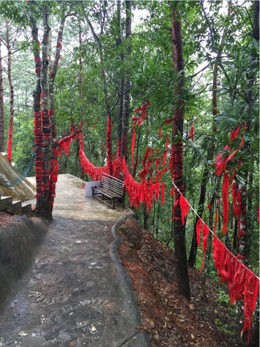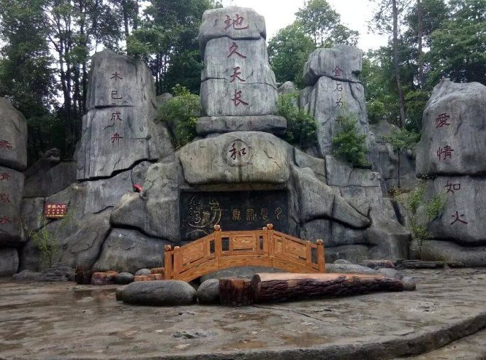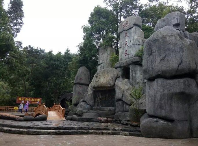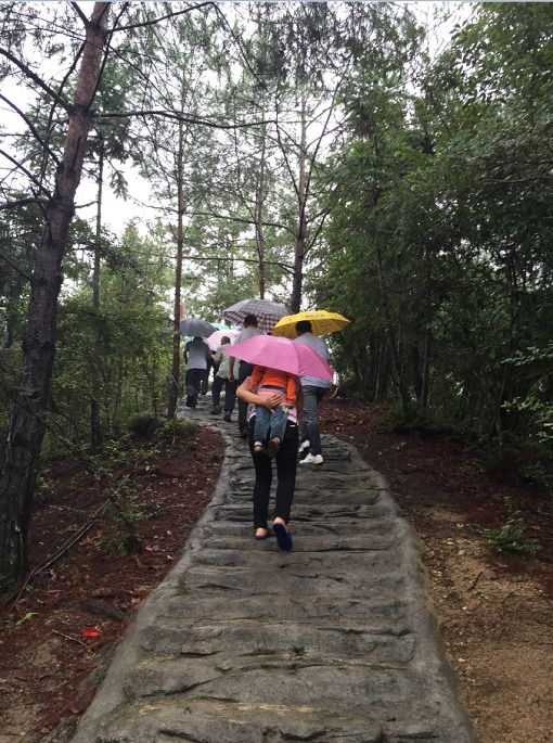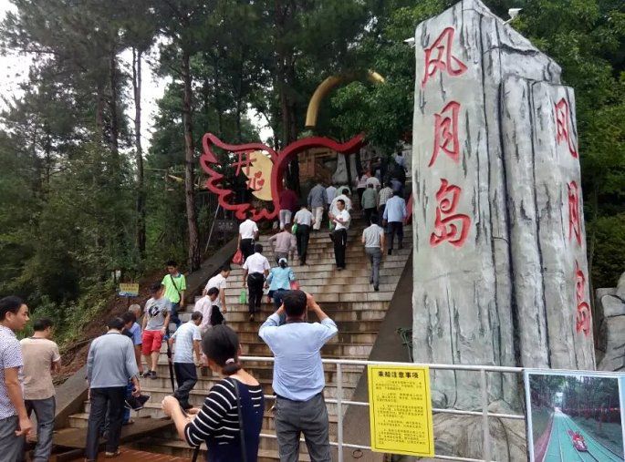 登岛第一个景点来到的是风月岛,这是一个人工营造的以爱情为主题的景点。进入景点随处可见的都是象征爱情的文字、雕像,比较适合情侣游玩拍照。刚上岛不久又开始开起大雨,在曲径通幽的小径上一行人撑着各种颜色的雨伞行走着,鞋子、裤腿、后背都已被大雨淋湿,一个同行的阿姨背着个小朋友小心的前行着,有的帮忙撑伞、有的帮忙扶着。跟着公司同伴一起出游的还有部分我们当地的村民,对于我们来说大部分人都是第一次见面,但是在旅行的互帮互助的场景随处可见。