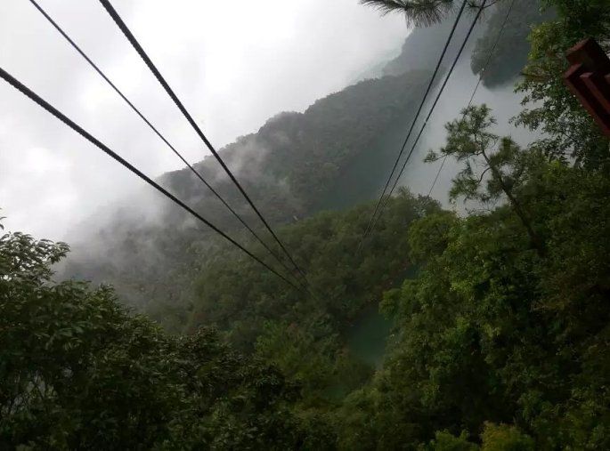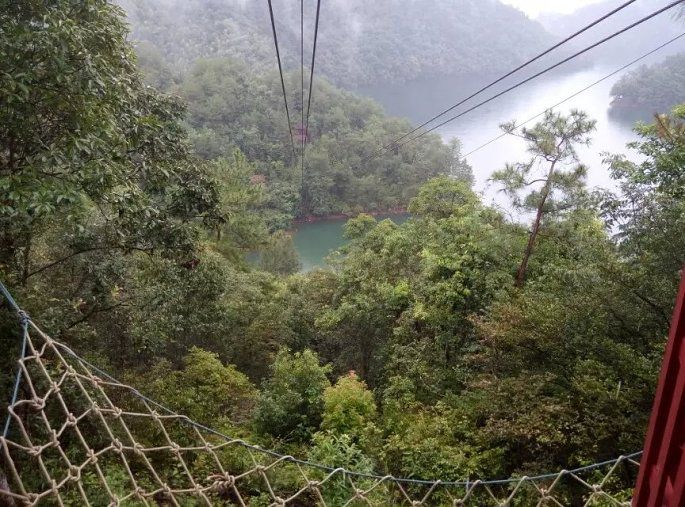 整个风月岛上唯一被吸引住的就属空中索道了,30元一次,不算太贵,对于喜欢刺激的朋友是个不错的选择。(Ps:导游没有介绍对岸就是离进口不远的地方,不然几个小伙伴就尝试了)。雾气、水汽亲吻着群山,要是顺着索道滑行还真有点腾云驾雾的感觉呢...此刻突然想起张磊的那首《南山南》:“南山南,北秋悲,南山有谷堆;南风喃,北海北,北海有墓碑;南山南,北秋悲,南山有谷堆;南风喃,北海北,北海有墓碑,北海有墓碑”。想就这样一直沉浸在这水墨山水画中...