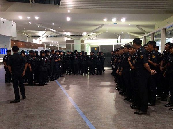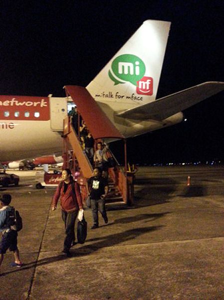 看到那些红色体恤衫了吗,这是亚航送我们的宣传衫。