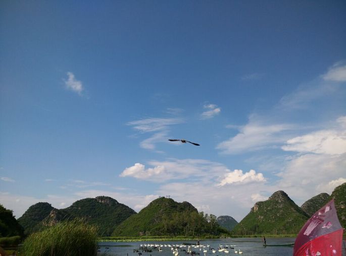 到了普者黑景区,如不乘船一游,将成终生憾事。船是彝家世代相传的独木小舟,宽不过三尺,仅容几个人。驶人湖中,如离弦之箭,轻快如风。若逢盛夏初秋,可停棹湖上,对弃垂钓。满目波光云影 ,周围荷蕊飘香,此时不禁令人诗潮如涌。