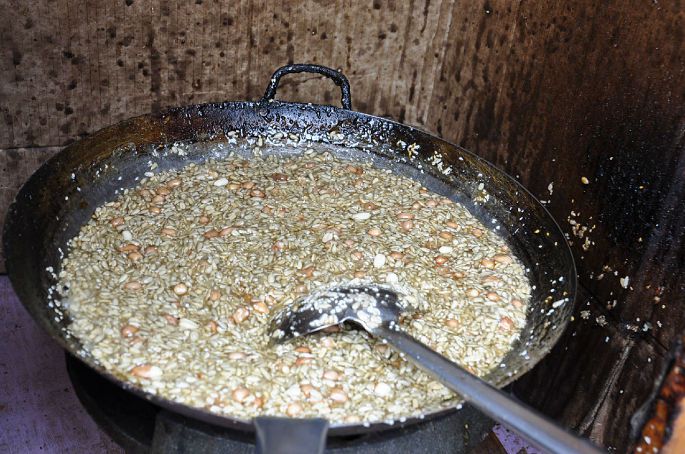姐看到我笑容满面,问我从那里来,说是看到我背着大包上去,这会收档回家做饭了!