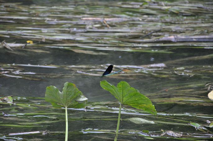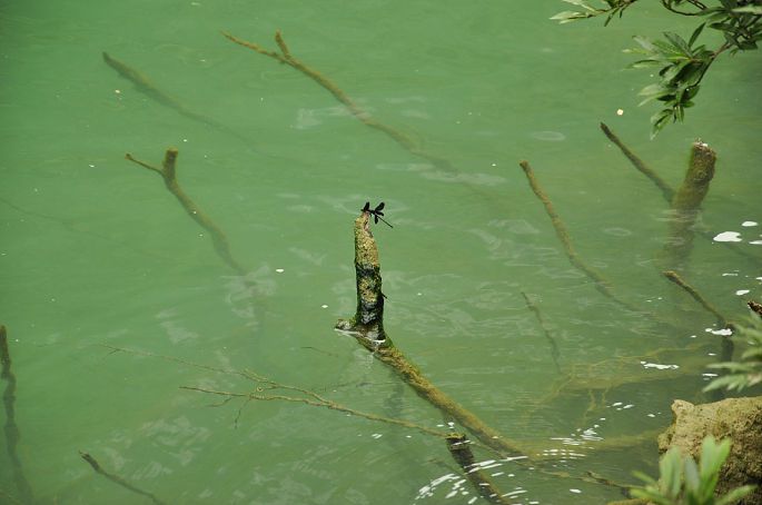 门票还没来得及买,把包扔在地下就跑到湖边,一个黑色的蜻蜓停在水里冒出的一支想必己经等候了多年的枝上……
