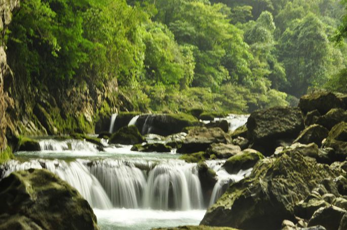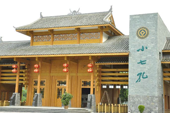 小七孔风景区位于荔波县城南部30余公里的群峰之中,景区全长7公里,面积约10平方公里,有百多个景点,集山、水、林、洞、湖、瀑为一体,里面有柔美恬静的涵碧潭、飞流狂泻的拉雅瀑布、潭瀑交错的 六十八级瀑布、盘根错节的龟背山、林溪穿插的水上森林、密林镶嵌的鸳鸯湖、悠蓝深邃的卧龙潭,妩媚 而迷人的响水河贯穿了整个风景区,它静如娴花照水,动似蛟龙出海;区内特有的奇、俊、秀、古、雄等自然美,区内居住着布依族、水族、苗族、瑶族等民族风情的原始奇景。