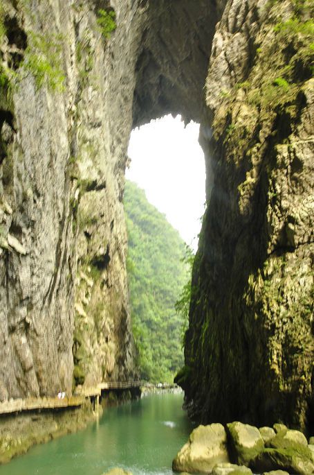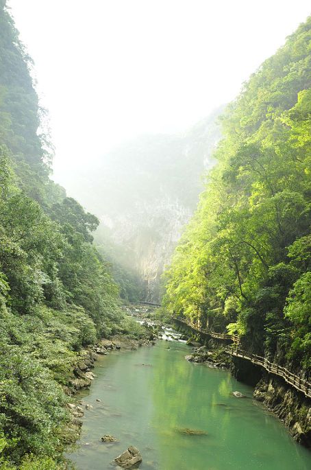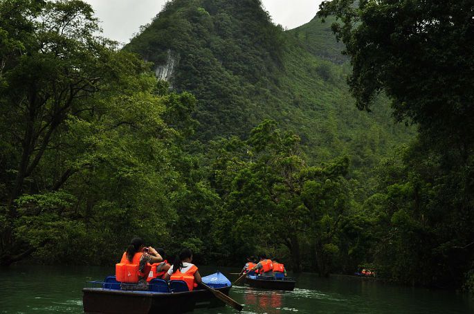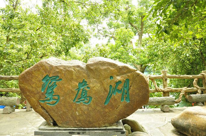 鸳鸯湖==为世界同一纬度地区绝无仅有的岩溶地貌水上森林区,以精巧、秀美、古朴、幽静著称,景区移步换景,布局紧凑,掩映在森林之中的鸳鸯湖。