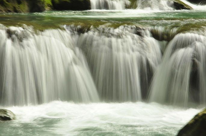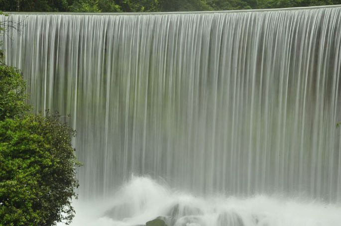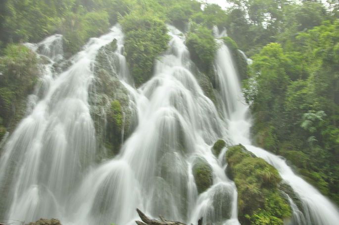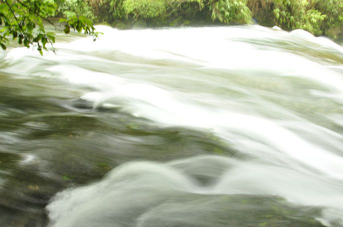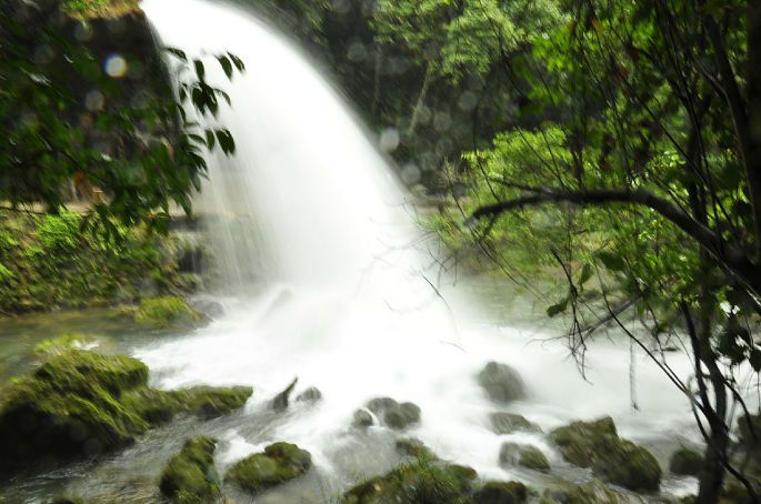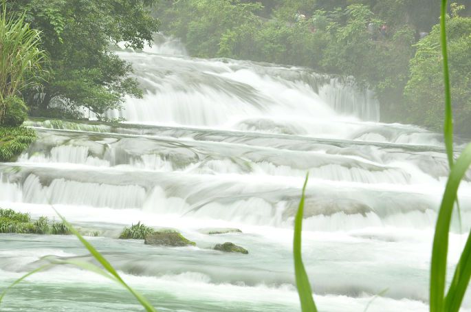 如此美的瀑布……根根水柱,组成一幅水帘,冲下来,撞到石头上,碰得零碎……