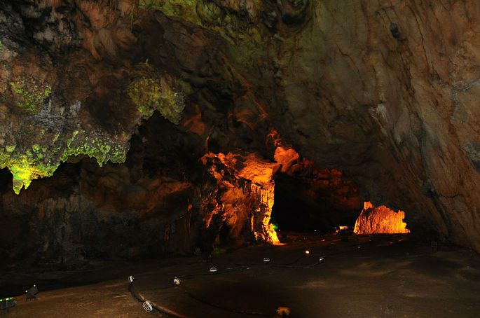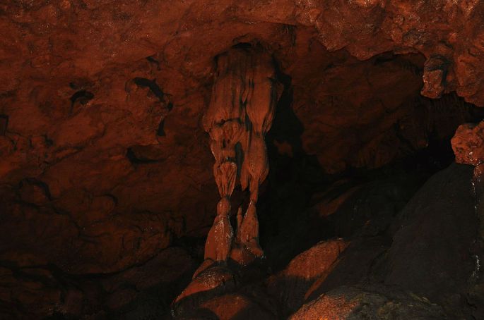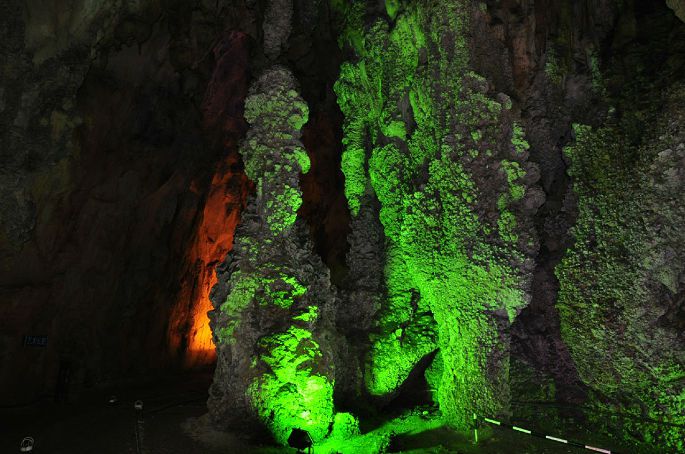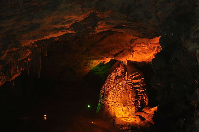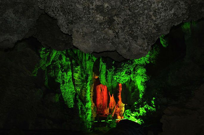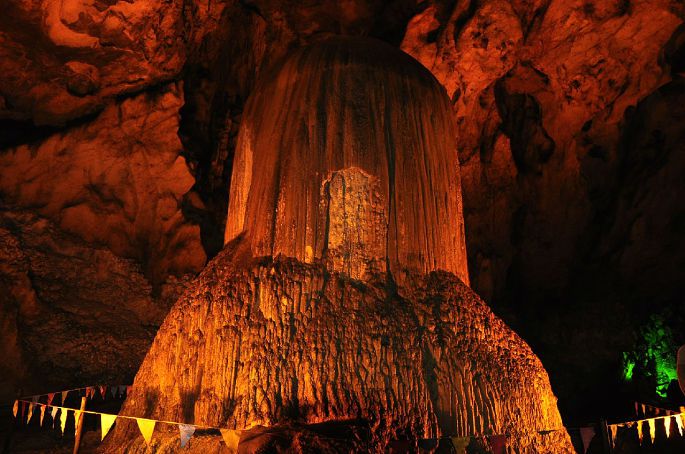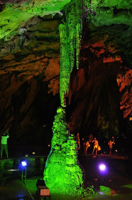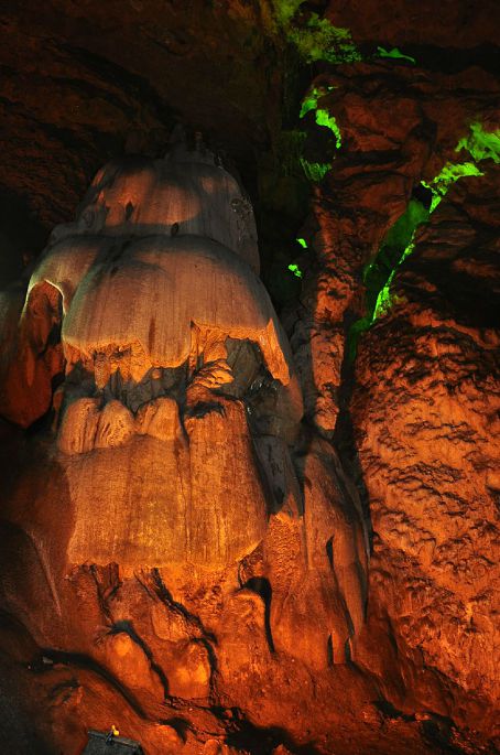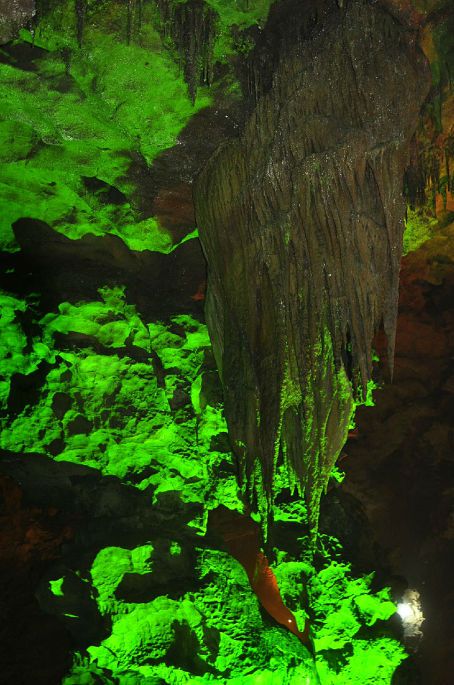 溶洞内=具说天钟洞内钟乳石每一百五十年长一公分,日积月累,经过几百年才能长成一跟石笋。