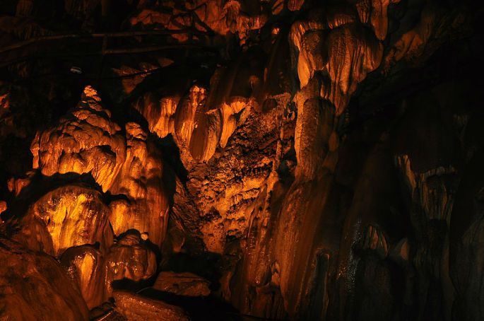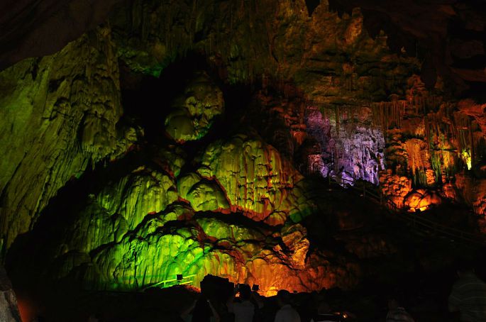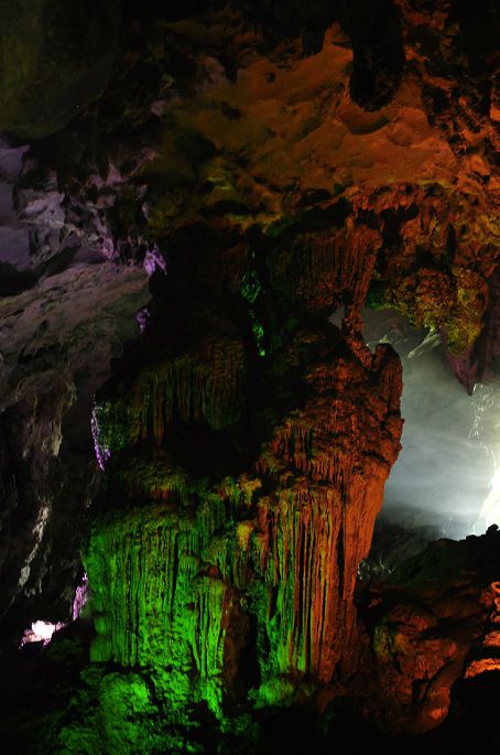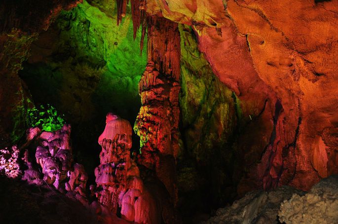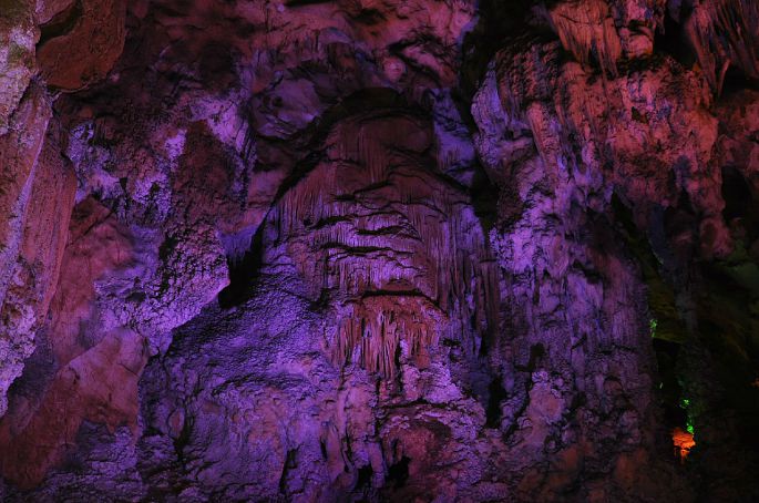 天钟洞=位于一座山峰的腰部。由山下攀到百米多高的山崖上,过南天门入洞,洞中美景宛若仙宫。因洞中有一种乳如铜钟倒扣于地,故名“天钟”。