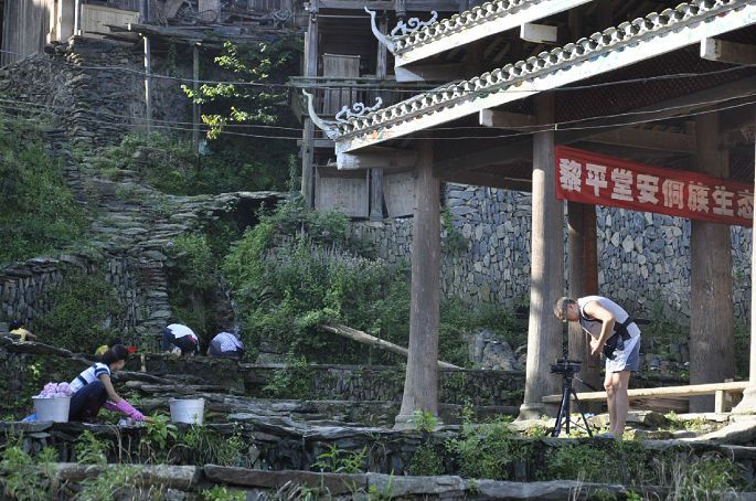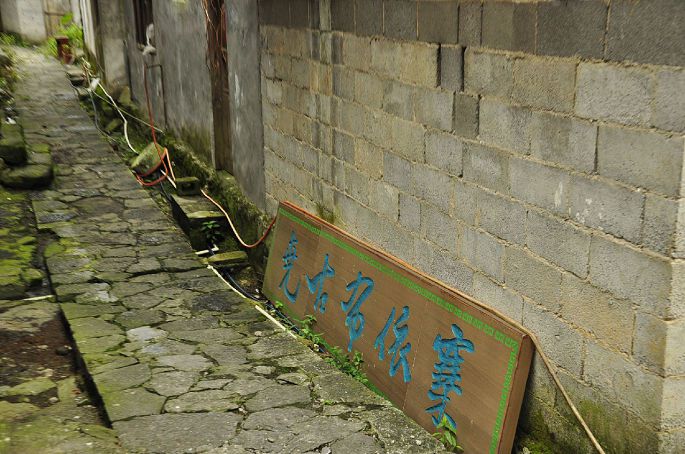 年青人外出,令这些古老的山寨不仅面临着没落,更可悲的是若大的村寨牌扁躺在入村口的石砖路旁!