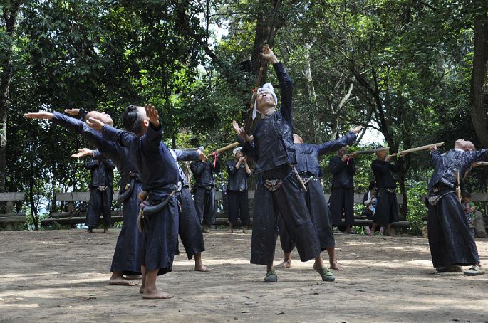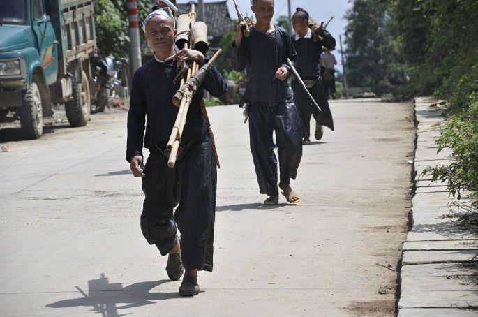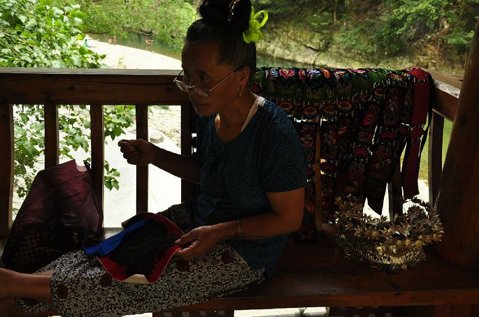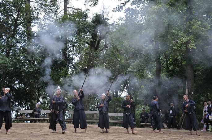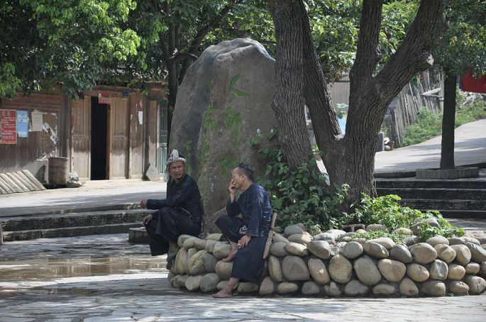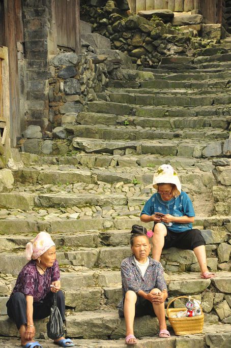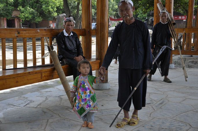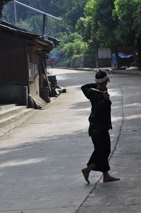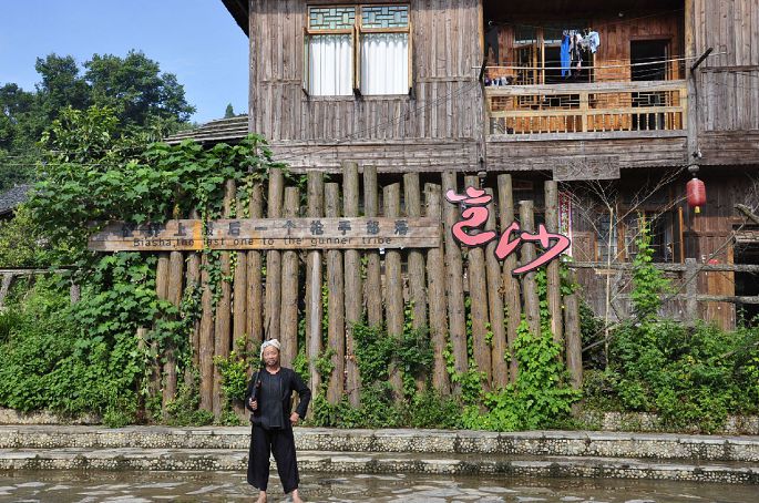 芭莎村不大,建于山粱坳口及面向都柳江一侧的半坡上。木楼古朴、简单;四周则为密林环绕,环境幽雅;衣着传统,发势奇特。装束有秦汉遗风,芭莎男子在头顶挽着发髻,穿着自家纺织的无领右开襟亮布衣,直筒大裤管亮布裤。长年身佩腰刀,肩扛火药枪,仿佛古代武士。女性则穿着自己制作的亮布衣裙,佩戴银饰,不过他们大多长年不穿鞋子,这位大叔笑容可掬却也十分精明哦,照张像多少得给点小费吧,哈哈!