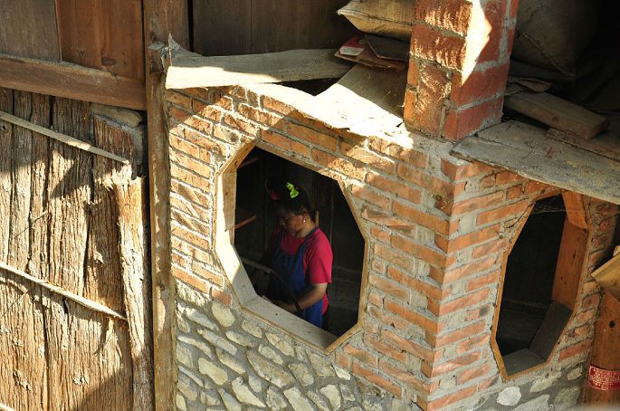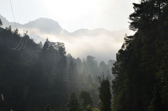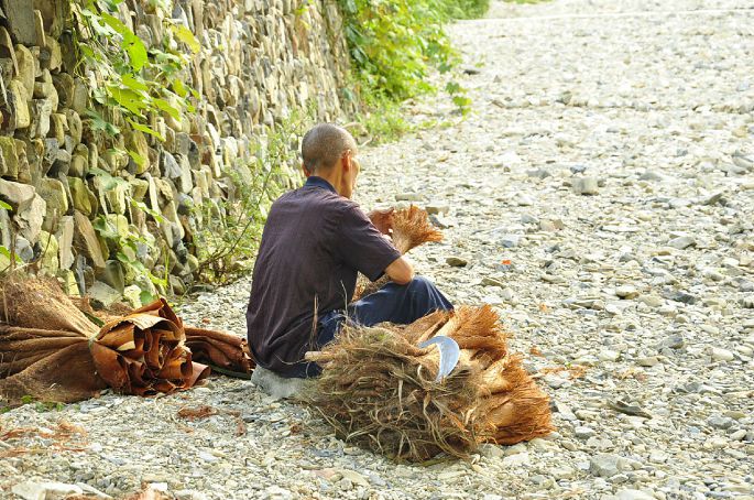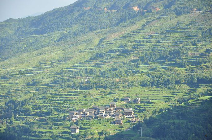 爬到山顶俯视着这个小小的原生态村落,从山上下来遇到了一位小姑娘擦肩而过时给了我一脸腼腆的笑容,于是聊了起来,小姑娘14岁读到小学没有读,手里拿着镰刀及捆扎好的野草,她每天早早地起床上山割草喂牛;一直目送她的背影进入了一户冒着炊烟的木屋。