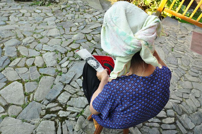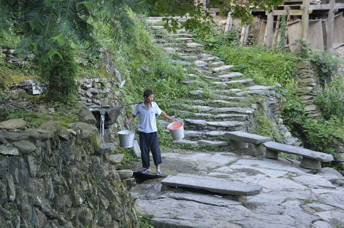 村子很小,下了车直接顺着石阶往半上坡里的村里跑,根据攻略提示找了好几家都没床位了,背着若大的包,有点灰心了,差不多快到山顶了,这时在旁边屋门口一位包着头巾正在和人聊天的男子问我是不是住店,我想我又遇到好人了,经过介绍原来他也是来此游玩的,他把老板娘电话给了我,在几经请求下老板娘同意征得其他客人同意后帮我调出一间房来。