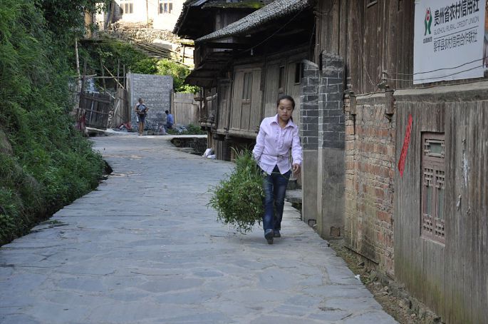 出了凯里路上灰尘滚滚,好多地方在修路,车子摇来荡去,历时一小时40分钟下了车呈现在眼前的村子