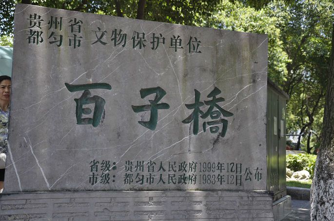 从肇兴回凯里的车上小李妈妈说她们想去百子桥看看;她们是之前从榕江去丛江下车时遇到的那对四川母女,原来我们乘坐同一辆车去同一个目的地,然后我们一路一起到芭莎、肇兴、(另一对遇到的河南母女俩决意去贵阳了)于是我又改变了主意跟随她们到都匀,下了车在高速路口好不容易叫了一部车,司机听说我们要去看百子桥非常吃惊那嘴形直接成了O型,轻描淡写地说这里到处都是这样的桥!