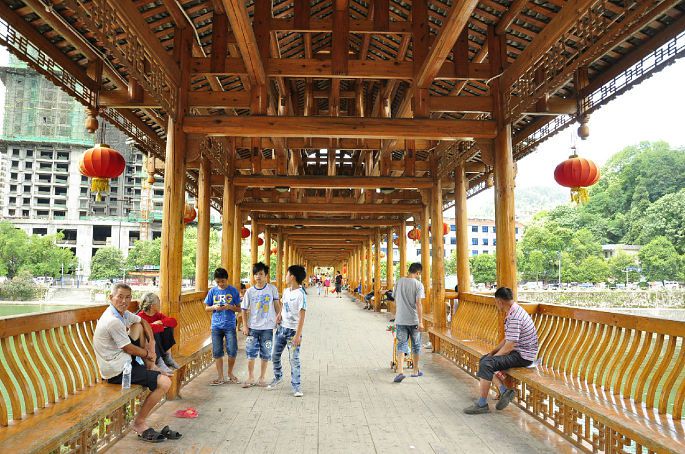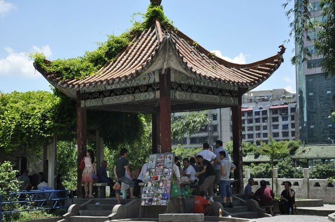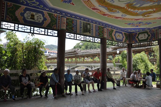 桥的周围长廊休息处,到处可见休闲的大人们在自娱自乐的享受着