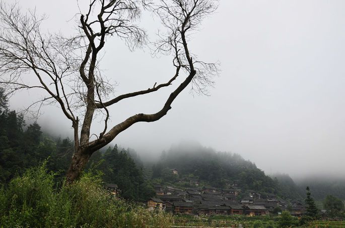 远观望去,这个小小村依如眼前的这颗树古老而神秘