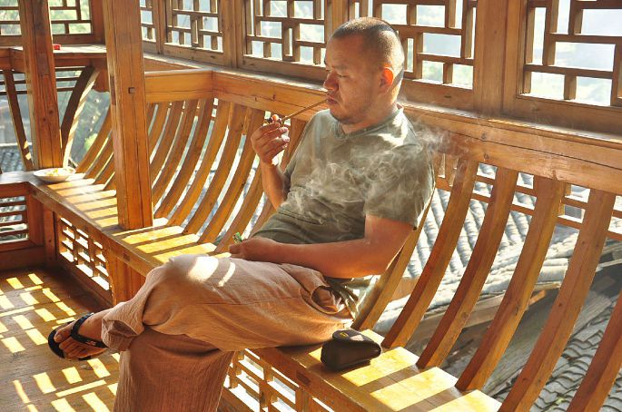 这一晚,我们一起吃饭的人有:台湾阿布即包头巾男子、北京四位服装艺术学院的美女学生专为研究服装而来,北京一对情侣大学生总是坐在窗台前静静地画着素描;老板娘及她家公,虽然没有大鱼大肉,有的只是家常小菜,但是这一餐是那么美味,至今无法忘怀!第二天还遇到了专为建筑研究而来的深圳大学建筑系的教授;为什么一个小小的村寨每年会吸引成千上万不同地方而来的朋友们,相信只有去过的人才深有体会吧!