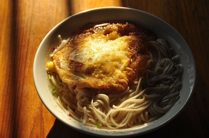 一路逛完,准备打道回”府“前面一老先生扶持着老伴缓慢地向桥上走去,我们又回到吃面的店家那东西还借放在他们家呢,吃了她家一碗面,店里那唯一的小杂房都被我们的包包临时暂住了,这一路总得到好心人的照顾和帮助!