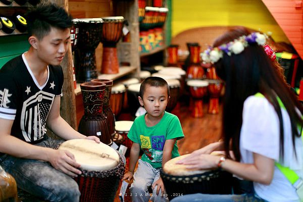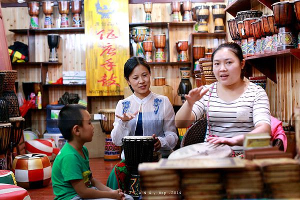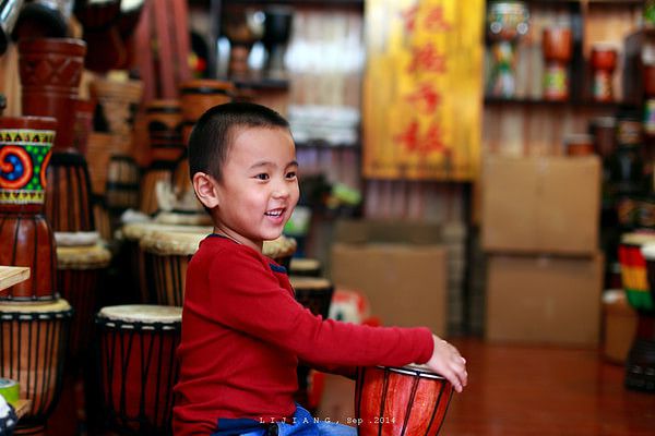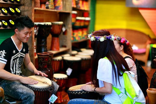 在丽江古城,有很多卖非洲手鼓的小店,也都兼卖CD。放着CD,喝着鼓声,也是一个招揽顾客的好方法,这不,淘淘就被鼓声吸引进店里,对这种鼓爱不释手。
