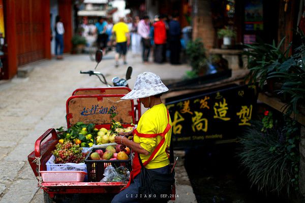 2.关于(单反)镜头的选择:完全取决于自己的习惯和当地的景色。自己的拍照习惯倾向于人文、人像、小品,所以此次用了三个镜头,28mm主攻人文、小品,在全幅的6D上,也能当成小广角,偶尔拍个风景;50mm作为标头,什么都能拍,大研古镇的挂机头,1.2的大光圈在人来人往的古城里,也能更好的完成把背景里“闲杂人等”全都虚掉的任务;80mm作为长焦,人像、特写、风光是这个头的强项,另外由于距离被摄对象较远,也拍了不少的人文片子。此次这三个镜头各拍了三分之一的片子,很好的完成了任务。