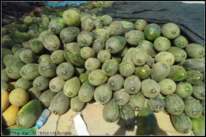 最后要隆重介绍额济纳的瓜,戈壁沙漠里种出的瓜。到达额济纳第一天晚上,在等多多驴友WU时,见一饭店前有一瓜摊,摊主大声叫着:5元一个!我一看,啊,那么大个头的瓜才5元一个?便好奇地上去看看,摊主立刻热情得开了一个瓜,割下一块,让我尝尝。咬一口,哇,这是什么瓜啊,这么好吃!我不得不说,但我又无法说清,这是一种什么感觉:一口咬下去酥酥的,立马满口甜汁,肉软汁多,口感清甜,这是我今生至此吃到的最好吃的瓜(到现在我还没搞清楚叫啥名)!马上和摊主说,我就要这个。摊主对我说,你随便挑,我们这儿的瓜都一样甜,卖给你们和当地人一样价。于是我就挑了两个,带给大家一尝,都说好吃。以致后来买了好多,一直吃到张掖。后两天在额济玩,碰到更便宜点,3元一个,这些都是当地农民自家地产的,便宜卖的有些硬伤,但不影响吃口。离开额济后,在新疆都没吃到如此的瓜,只有在塔克拉玛干沙漠第一村,才又尝到当地维族村民自己种的这种味道的瓜。可见这只有那戈壁的沙田才有的味道。小杨师傅说,因为额济纳这里的瓜没名气,一般现在都是打着新疆哈密瓜的招牌在卖。瓜田都被那些商家垄断,每年瓜熟时,这些商家直接到地里收,他们认为不好的,卖不出价的,都扔在地里,干脆不要了。一路上确实见到瓜田里散落着很多瓜,太可惜了。现将这种瓜的图片贴出,记得一定要买这种青皮的,黄皮的口味差些。