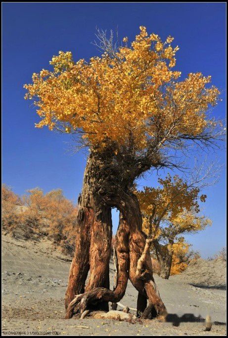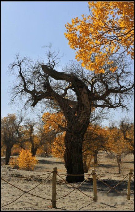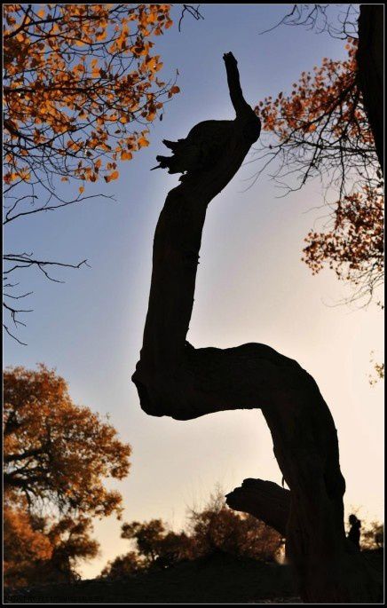 胡杨是中亚地区唯一适合生长的乔木,它是大自然漫长进化过程中幸存下来的宝贵物种。她妩媚的风姿、倔强的性格、多舛的命运激发人类太多的诗情与哲思。古往今来,胡杨已成为一种精神而被人们所膜拜……她在茫茫的大漠中,为谁起舞千年?也许这千年的等待,只为了那一瞬间的交错,只为了一刹那的光影结合,她便得以在镜头下永久地存在着,让世人永远记住她那坚强外表下的柔美。