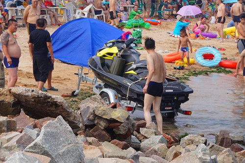 这水上摩托车是私人,从北京拉过来的,土豪呀