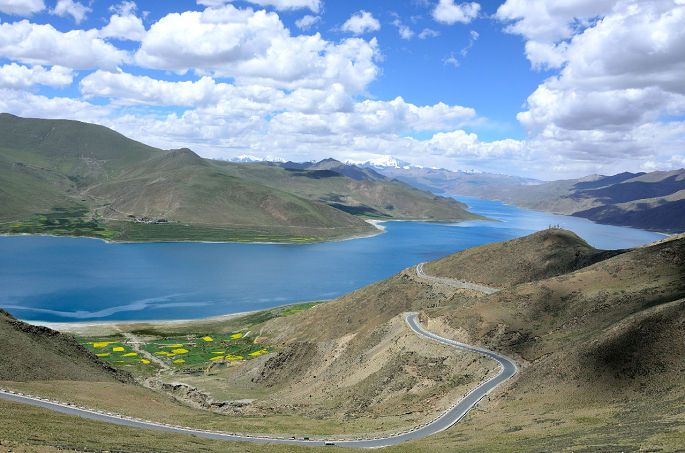 羊卓雍措,也称羊湖,西藏三大圣湖之一,高原淡水湖,海拔4441米,有天上圣湖之美誉。