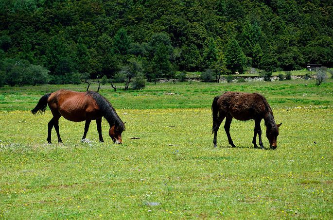 DAY7:无出行计划,休息调整。一大早沿着美丽的尼洋河畔闲逛,国道318线上,放养的猪、牛、羊、马,自由穿行于公路和牧场。